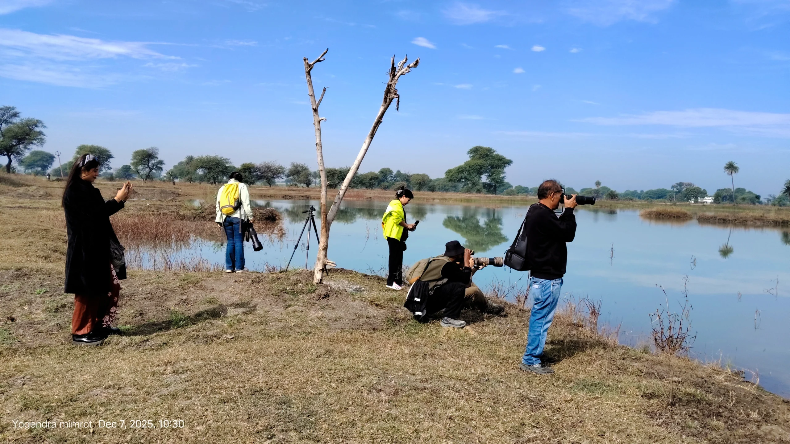 The bird walk at Daulat Baroda Lake, Indore, led by Yogendra, brought together six enthusiastic participants for an engaging morning in nature. With tall grasses surrounding the lake, many birds remained hidden at first, creating an atmosphere of anticipation and surprise. As the group patiently scanned the landscape, several remarkable sightings emerged—including a Common Kestrel, a pair of Sarus Cranes, Eurasian Collared-Doves, and notably, a pair of Egyptian Vultures. In total, the participants recorded 45 bird species, showcasing the impressive diversity of the area.