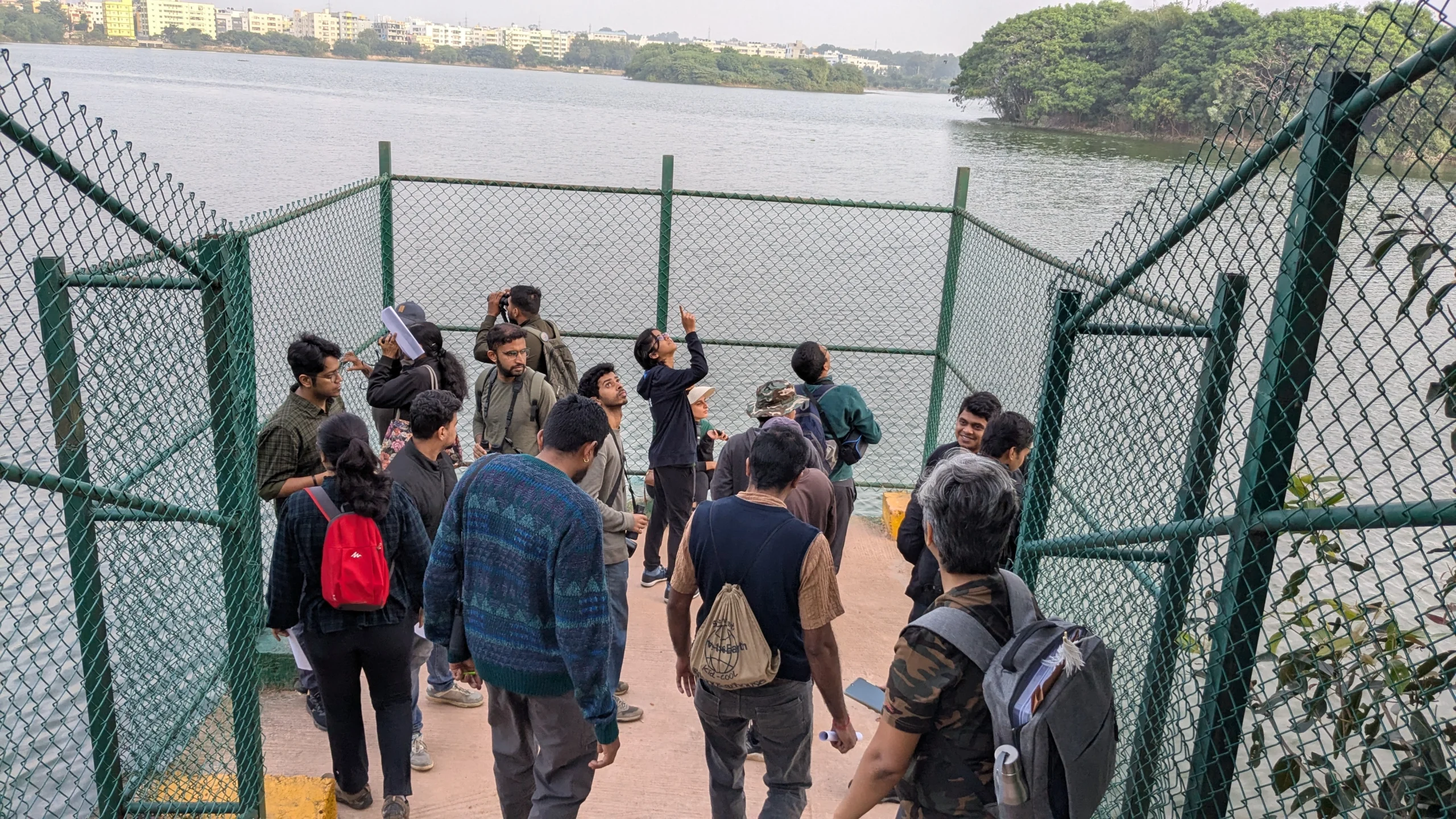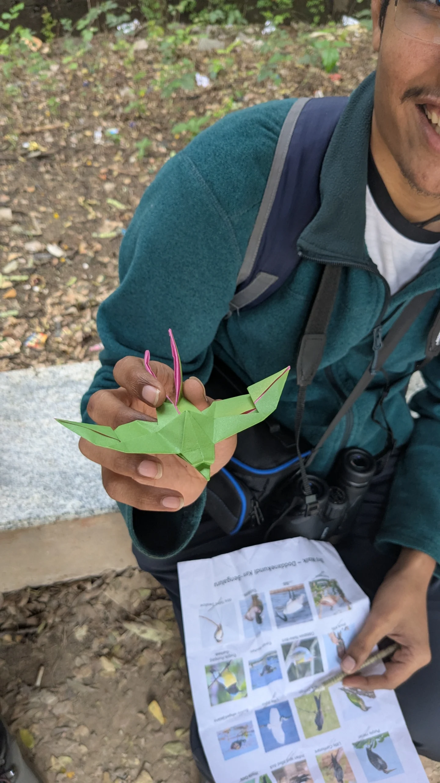 The Doddenakundi Kere Bird Walk in Bengaluru, led by Manasvi and her parents, attracted 21 participants for a lively and informative morning session. The event coincided with Dr. Salim Ali’s birthday/National Bird Day, and the guide shared insights about the legendary ornithologist’s contributions and the importance of birds in maintaining ecological balance. The session included a hands-on demonstration using feathers from a peafowl, where participants learned to distinguish between tail, flight, and contour feathers, making the experience both educational and interactive.